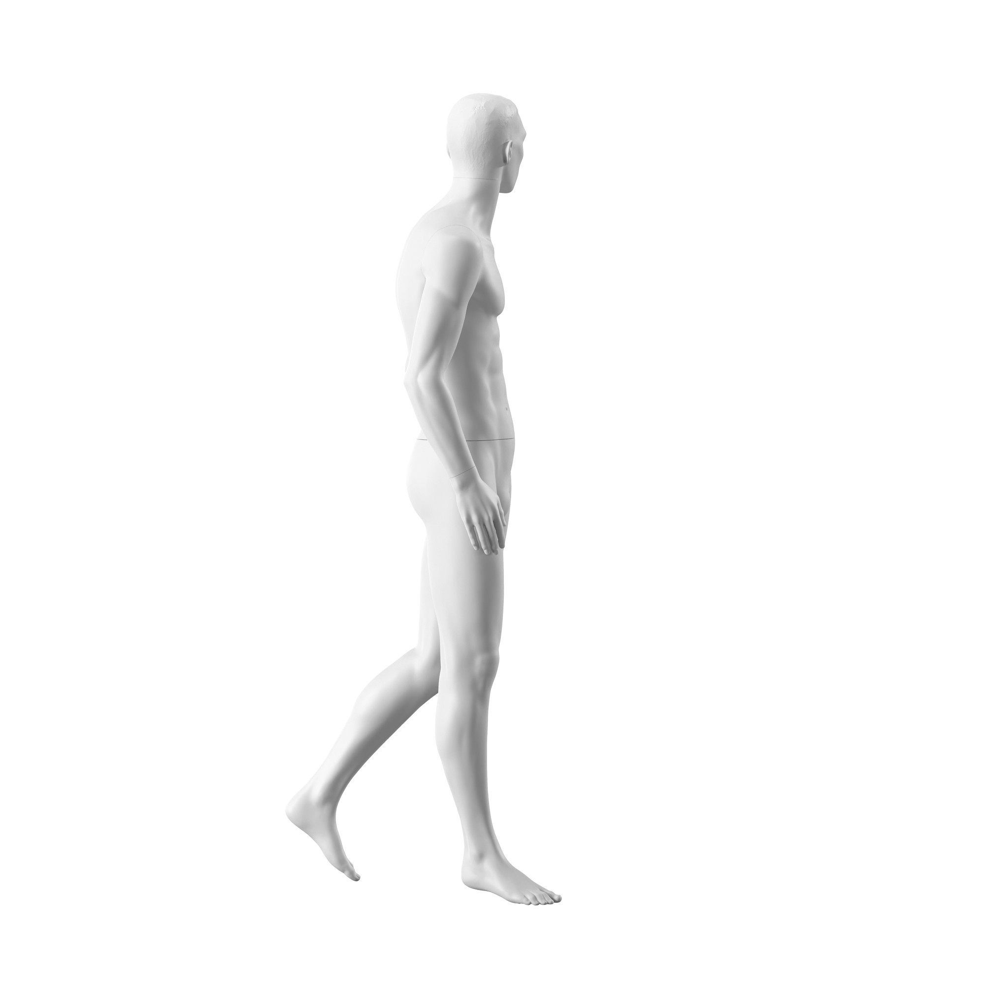 Nukke, abstrakti irrotettava pää, kasvoton, ekologisesti valmistettu FRP:stä, lakattu mattavalkoiseksi, sis. lasisen jalkalevyn, jalka- ja vasikkatelineen.