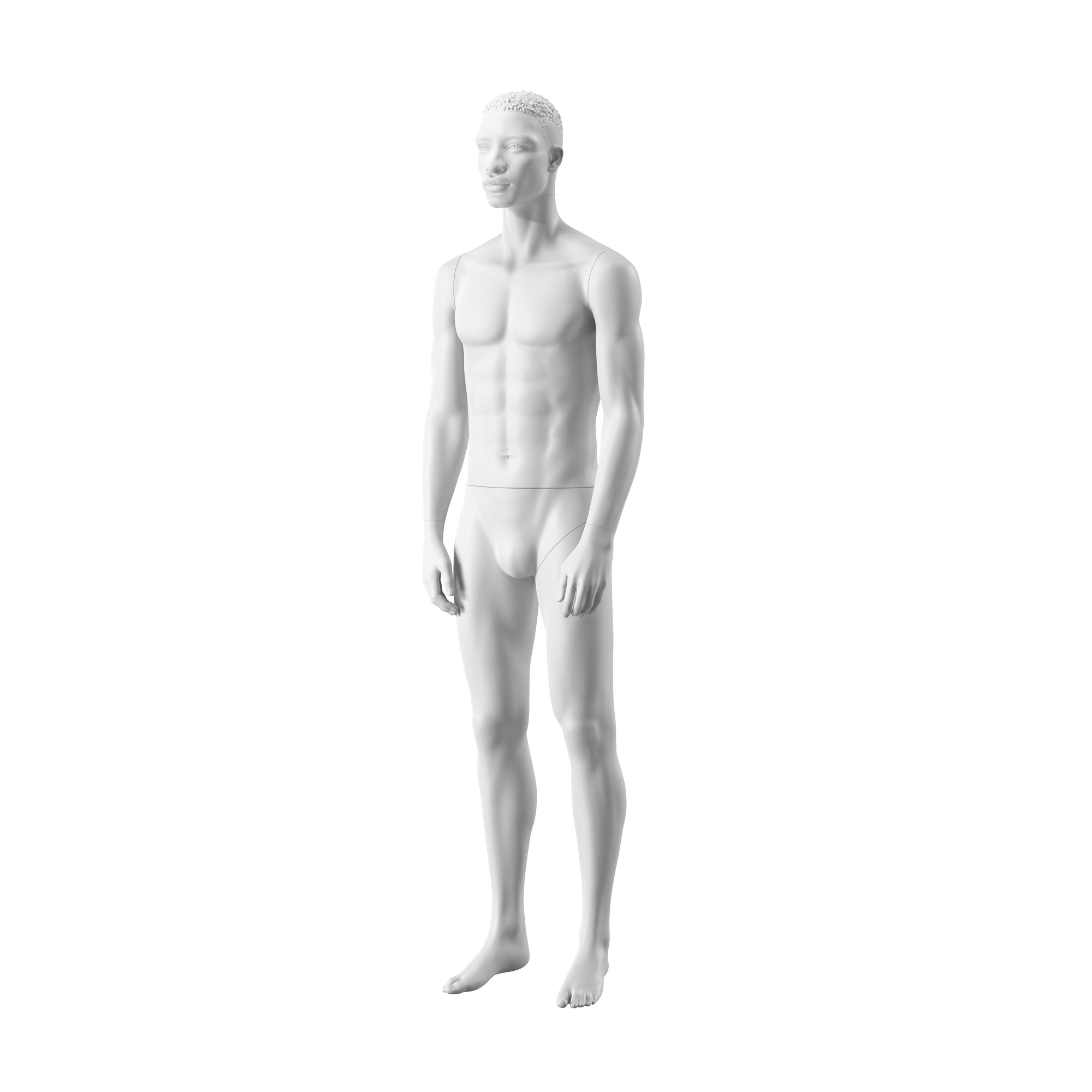Skyltdocka, abstrakt avtagbart huvud, faceless, ekologiskt framställd i FRP lackerad i matt vit, inkl fotplatta i glas, fot och vadstativ.